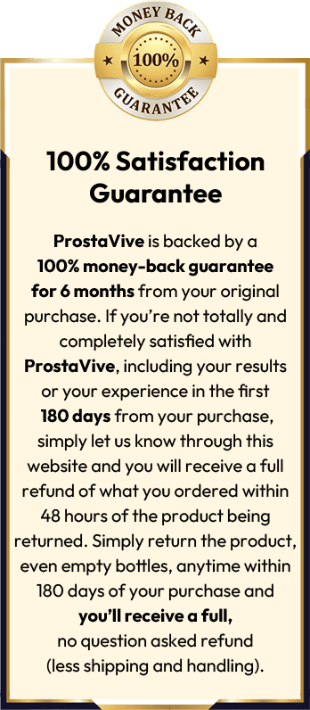 Every single ProstaVive supplement purchase is backed with a 180-day 100% money-back guarantee. So if you are not impressed with the results, you can simply choose this refund policy for getting your complete money back. Even though the ProstaVive formula is made using natural ingredients its effect on individuals may vary. If you have used the supplement for the suggested period of time and didn’t get the expected results then the refund policy is yours to claim.
